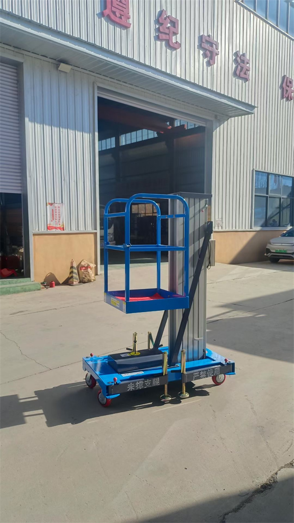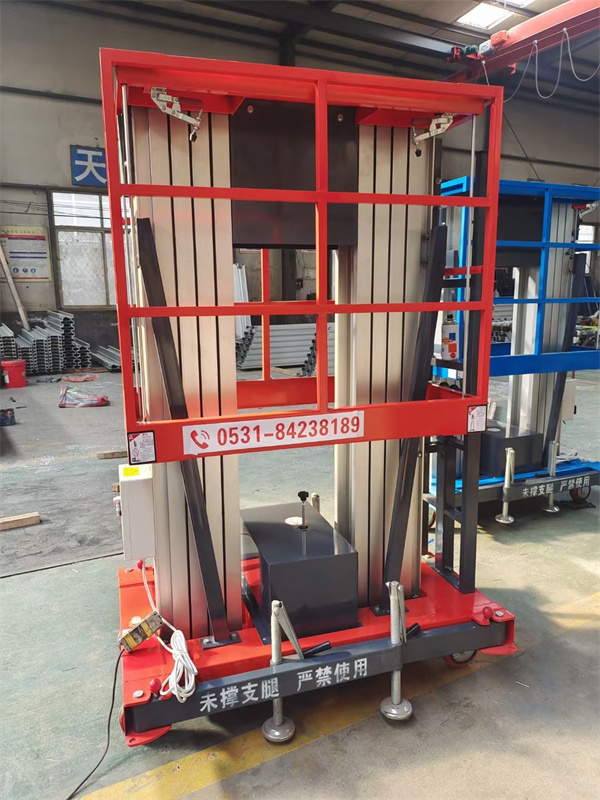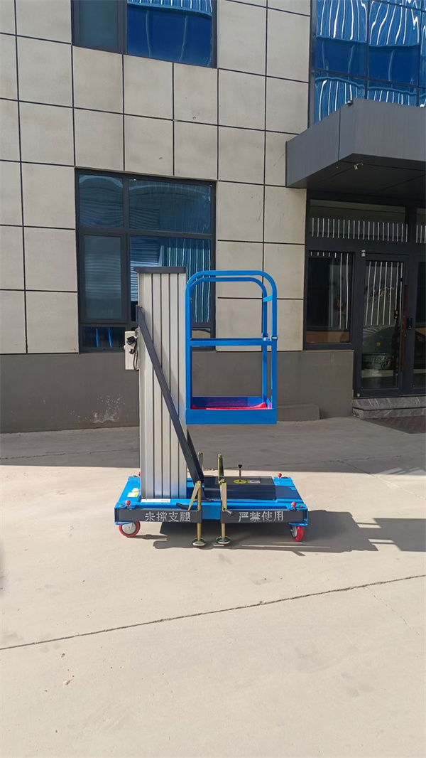 升降桅柱選用優質高強度鋁合金型材,采用雙鏈條牽引,提高安全系數。可折疊式護欄,閑置時護欄可向下折疊降低自身高度,節省空間,作業時安裝簡潔便利。升降操作設兩套按鈕,工作臺面與臺下都可控制。平臺上升到最高位置時有極限限位。具有造型美觀、結構緊湊、體積小、重量輕、升降平衡、安全可靠等優點。