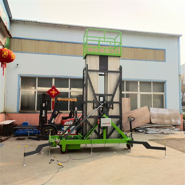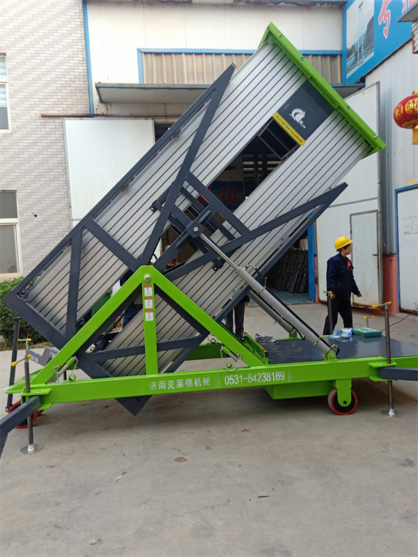 鋁合金式升降平臺采用液壓油缸、鏈條聯運形式實現作業平臺的舉升。